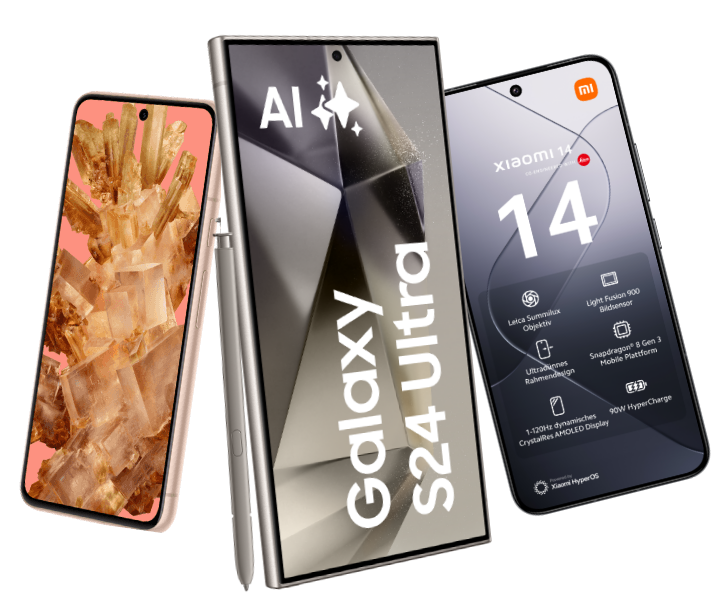 Neueste Smartphones ab 0,– € einmalig in Verbindung mit einem 1&1 Volumen-Tarif mit Multicard, z.B. das Samsung Galaxy S24 FE in Verbindung mit dem 1&1 Volumen-Tarif S mit Multicard und 10 GB Highspeed-Volumen/Monat (bis zu 300 MBit/s im Download, bis zu 50 MBit/s im Upload, danach jew. max. 64 kBit/s) für dauerhaft 24,99 €/Monat. Dauertiefpreis: Kein Preissprung während der gesamten Laufzeit. Einmalige Zahlung 140,‒ € (S24 FE) zahlbar bei Vertragsende, spätestens nach 36 Vertragsmonaten. Gleichzeitig wird treuen Kunden, sofern der Vertrag dann noch besteht, die Einmalzahlung im 36. Monat automatisch gutgeschrieben, sodass sie sich auf 0,– € reduziert. Gratis Telefonieren und Surfen gilt nicht für Sonder- und Premiumdienste, Verbindungen aus Deutschland ins Ausland sowie Roaming außerhalb EU gemäß Preisliste. Telefonate in dt. Fest- und Handynetze inklusive sowie Verbindungen innerhalb des EU-Auslands und aus EU nach Deutschland plus Island, Liechtenstein und Norwegen. Bereitstellungspreis 39,90 €. Je 24 Monate Vertragslaufzeit. Bestimmte AI-Funktionen setzen einen Samsung Account Login voraus. Galaxy AI ist in Deutschland ab 16 Jahren verfügbar. Preise inkl. MwSt.
