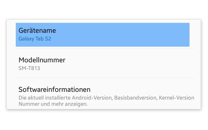 Auf der "Info zu Tablet" Seite können Sie nun den Gerätenamen und die Modellnummer finden.