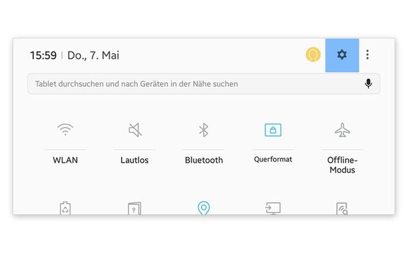 Öffnen Sie auf Ihrem Android-Gerät die "Einstellung". Das Symbol für Einstellungen ist häufig ein Zahnrad. Falls Sie am oberen Bildschirmrand nun mehrere Kategorien nebeneinander angeordnet sehen, dann tippen Sie bitte auf "Optionen". Falls Sie keine nebeneinander angeordneten Kategorien haben ist dies nicht schlimm, machen Sie einfach mit dem nächsten Schritt weiter.
