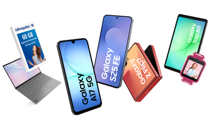 Premium-Tablets oder -Laptops in Verbindung mit einer 1&1 Daten-Flat S mit 10 GB Highspeed-Volumen/Monat, z. B. das Lenovo IdeaPad Slim 5, das Samsung Galaxy Tab A11 oder das Samsung Galaxy Book4 z.B. in Verbindung mit der 1&1 Daten-Flat S mit 10 GB Highspeed-Volumen/Mon. (bis zu 300 MBit/s Download/bis zu 50 MBit/s Upload, danach je max. 64 kBit/s), für 29,99 €/Mon. (IdeaPad Slim 5), 14,99 €/Mon. (Tab A11) bzw. 24,99 €/Mon. (Galaxy Book4). Mindestvertragslaufzeit je 24 Monate, danach jederzeit kündbar mit 260,‒ € (IdeaPad Slim 5), 80,‒ € (Tab A11) bzw. 200,– € (Galaxy Book4) zahlbar bei Vertragsende, spätestens nach 36 Vertragsmonaten. Oder ohne Einmalzahlung bei Auswahl eines neuen Geräts bei 1&1 und Rücksendung des Altgerätes in gebrauchsfähigem Zustand. Alternativ wird treuen Kunden, sofern der Vertrag nach 36 Monaten noch besteht, die Einmalzahlung im 36. Monat automatisch gutgeschrieben, sodass sie sich auf 0,– € reduziert (Geräterückgabe hierfür nicht erforderlich). Gratis Surfen gilt nicht für Sonder- und Premiumdienste. Eine Nutzung der Datenflatrate für Voice over IP ist nicht gestattet. Energieeffizienz Tab A11: D. Bereitstellungspreis je 29,90 €.