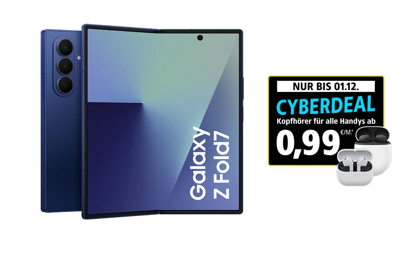 Samsung Galaxy S25- und Z-Serie, z.B. das Galaxy S25 FE, das Galaxy S25 Ultra oder das Galaxy Z Flip7, z.B. in Verbindung mit der 1&1 All-Net Flat S mit Multicard und 30 GB Highspeed-Volumen/Mon. (bis zu 300 MBit/s Download/bis zu 50 MBit/s Upload, danach je max. 64 kBit/s) für 24,99 €/Mon. (S25 FE), 49,99 €/Mon. (S25 Ultra) oder 34,99 €/Mon. (Z Flip7). Mindestvertragslaufzeit je 24 Monate, danach jederzeit kündbar mit 150,– € (S25 FE), 420,– € (S25 Ultra) oder 240,– € (Z Flip7) Einmalzahlung – zahlbar bei Vertragsende, spätestens nach 36 Vertragsmonaten. Oder ohne Einmalzahlung bei Auswahl eines neuen Geräts bei 1&1 und Rücksendung des Altgerätes in gebrauchsfähigem Zustand. Alternativ wird treuen Kunden, sofern der Vertrag nach 36 Monaten noch besteht, die Einmalzahlung im 36. Monat automatisch gutgeschrieben, sodass sie sich auf 0,– € reduziert (Geräterückgabe hierfür nicht erforderlich). Inklusive Telefonate in dt. Fest- und Handynetze sowie Verbindungen innerhalb des EU-Auslands und aus der EU nach Deutschland. Gratis Telefonieren und Surfen gilt nicht für Sonder- und Premiumdienste, Verbindungen aus Deutschland ins Ausland sowie Roaming außerhalb EU gemäß Preisliste. Bereitstellungspreis je 39,90 €.