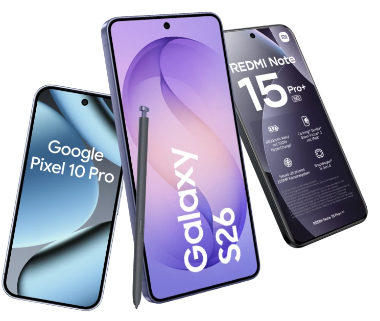 Suchen Sie nach einem neuen Vertrag mit Handy, sind Sie bei 1&1 richtig. Bei uns wählen Sie ganz einfach Ihr favorisiertes Smartphone aus und entscheiden sich für den zu Ihren Bedürfnissen und Anforderungen passenden Handyvertrag. Zum Beispiel können Sie das Samsung Galaxy S26 mit Vertrag bestellen. Nach der Bestellung erhalten Sie dank unseres exzellenten Services Ihre SIM-Karte, Ihre Vertragsunterlagen und Ihr Handy am nächsten Werktag – und das völlig sorgenfrei mit unserer Overnight-Lieferung.