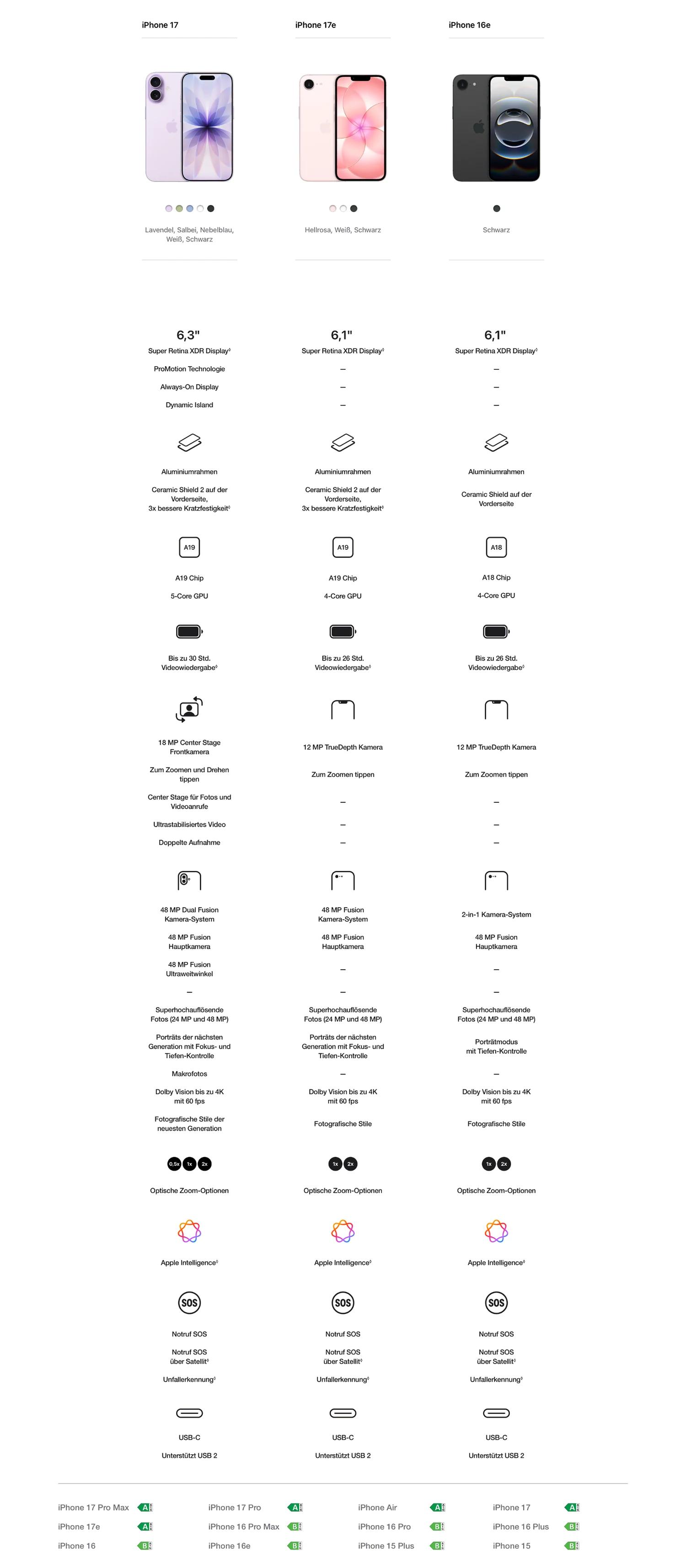 Die neuen iPhone 17 Modelle im Vergleich
