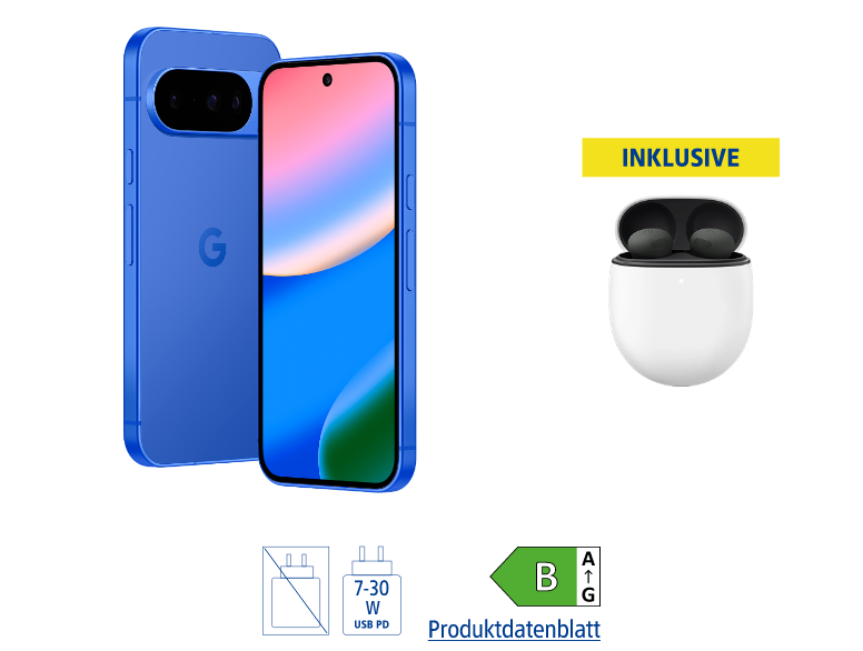 Google Smartphones inklusive Google Pixel Buds Pro 2, z.B. das Google Pixel 10, Pixel 10 Pro oder Pixel 10 Pro XL je inkl. Google Pixel Buds Pro 2, z.B. in Verbindung mit der 1&1 All-Net Flat S mit Multicard und 30 GB Highspeed-Volumen/Mon. (bis zu 300 MBit/s Download/bis zu 50 MBit/s Upload, danach je max. 64 kBit/s) für 39,99 €/Mon. (Pixel 10), 47,99 €/Mon. (Pixel 10 Pro) oder 52,99 €/Mon. (Pixel 10 Pro XL). Mindestvertragslaufzeit je 24 Monate, danach jederzeit kündbar mit 280,‒ € (Pixel 10), 380,‒ € (Pixel 10 Pro) oder 440,‒ € Pixel 10 Pro XL) Einmalzahlung – zahlbar bei Vertragsende, spätestens nach 36 Vertragsmonaten. Oder ohne Einmalzahlung bei Auswahl eines neuen Geräts bei 1&1 und Rücksendung des Altgerätes in gebrauchsfähigem Zustand. Alternativ wird treuen Kunden, sofern der Vertrag nach 36 Monaten noch besteht, die Einmalzahlung im 36. Monat automatisch gutgeschrieben, sodass sie sich auf 0,– € reduziert (Geräterückgabe hierfür nicht erforderlich). Inklusive Telefonate in dt. Fest- und Handynetze sowie Verbindungen innerhalb des EU-Auslands und aus der EU nach Deutschland. Gratis Telefonieren und Surfen gilt nicht für Sonder- und Premiumdienste, Verbindungen aus Deutschland ins Ausland sowie Roaming außerhalb EU gemäß Preisliste. Bereitstellungspreis je 39,90 €.