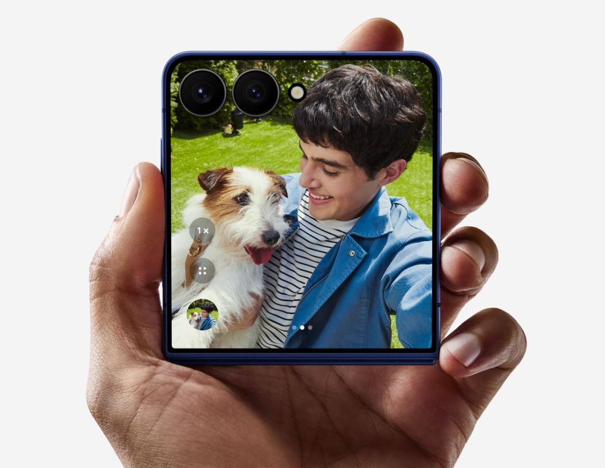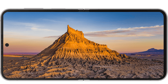 Fangen Sie mit der Weitwinkel- und Ultra-Weitwinkel Kamera des Samsung Galaxy Z Flip7 Erlebnisse ein. Dank KI-Features können Sie selbst einen verschwommenen Schnappschuss noch zu einer glasklaren Erinnerung machen oder unerwünschte Motive retuschieren. Machen Sie tolle Selfies mit der FlexCam – einfach aufklappen und kreativ posieren, ganz ohne Stativ.