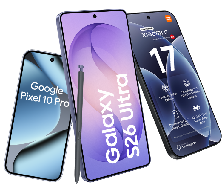 Für einen geringen monatlichen Aufpreis gibt es für Sie ein neues und leistungsstarkes Smartphone von Top-Marken wie Samsung, Apple oder Xiaomi je nach Modell mit einem attraktiven, monatlichen Aufpreis dazu.