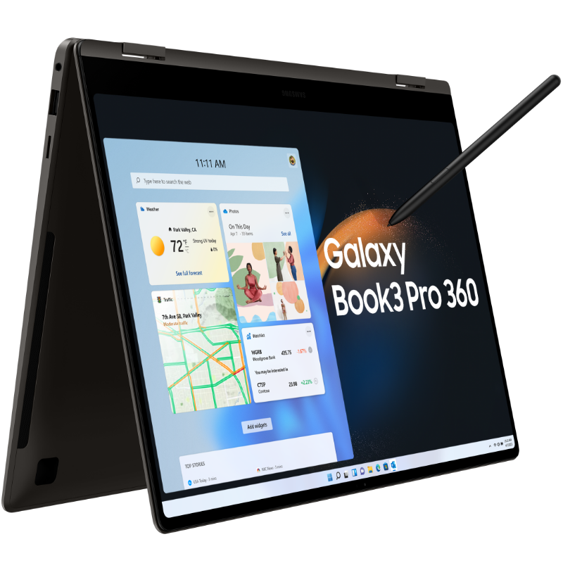 Das 16 Zoll Display des Samsung Galaxy Book3 Pro 360 bietet dank OLED-Technologie und 2.880 x 1.800 Pixeln Auflösung scharfe und farbstarke Bilder. Es lässt sich auch im 360 Grad Winkel zusammenfalten – so wird aus dem leistungsstarken Notebook ein Tablet mit Touchscreen-Steuerung. Ideal für schnelle Notizen und lange Bildschirmarbeit. Der leistungsstarke Intel Core i5-1340P CPU Prozessor sorgt mit 12 Prozessorkernen für volle Power. Das Galaxy Book3 Pro 360 kommt standardmäßig mit einem S Pen, so können Sie frei zeichnen und schreiben.