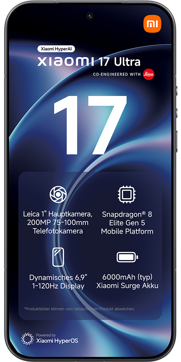 Dank des kräftigen 6.000 mAh Xiaomi Surge Akkus und bis zu 90 W kabelgebundenem Xiaomi HyperCharge ist Ihr Xiaomi 17 Ultra immer einsatzbereit. Genießen Sie ausdauernde Laufzeit und laden Sie blitzschnell wieder auf – perfekt für lange Tage und intensive Nutzung.